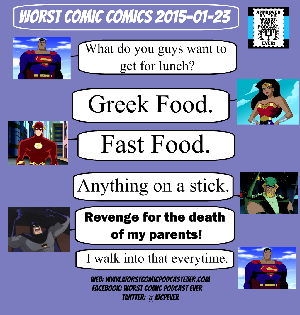Batman Hungers Only For Justice! Also Alfred packed me a tuna sandwich with the crust cut off so I’m good.