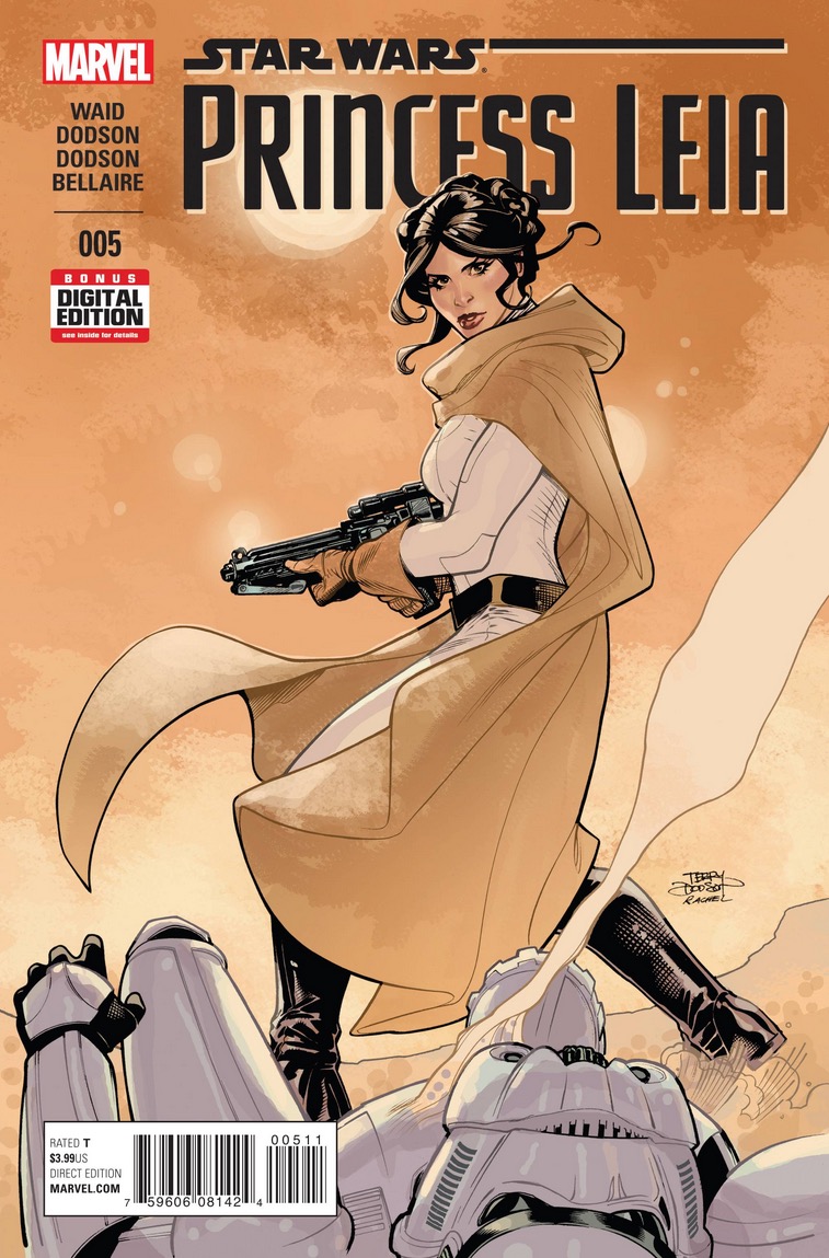 Princess Leia #5 (3.99, Marvel) I personally believe this book could continue well past five issues, but I also appreciate the fact they have told a specific story which will have a definitive conclusion and that they did it with the same creative team all five issues. Bravo! After meeting Nien Numb last issue and learning more about his backstory the issue concluded with Leia in the belly of an Imperial Shuttle, the result of a prisoner swap for an Alderaanian refugee whom she’s never met before. This issue she finds a way to escape her Imperial captors once more and lead a daring attack against them! Will this end up being a slaughter or do the rebels have a chance to strike back against the Empire? Waid, Dodson, Dodson, Bellaire 12+