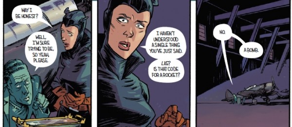The basic premise has writer James Robinson meeting artist Greg Hinkle to discuss a new Airboy assignment from Image Comics. The dreaded Writer’s Block sends the duo into a bacchanalian descent into every vice possible. At their worst, who should they encounter in the L.A. bar but Airboy himself. Drawn into their world. Airboy is disgusted by what the world has become, in particular this creative team that wants to chronicle his adventures. So Airboy brings Robinson & Hinkle into his world, so the two of them can help Airboy and the rest of his squadron in destroying a bridge controlled by the Nazis.