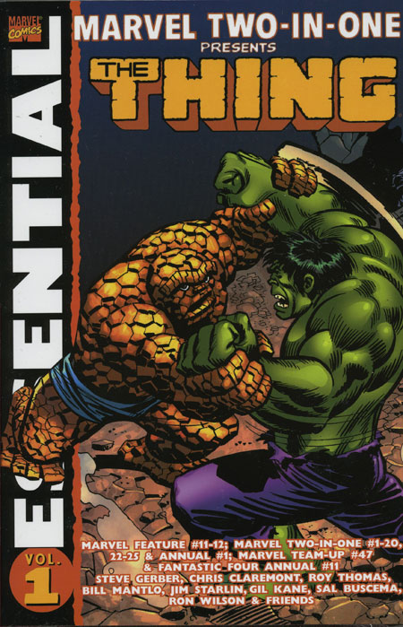 Footnotes: Marvel Two-In-One #21 is not included in this Essential volume. That issue teamed the Thing up with Doc Savage. Marvel no longer holds the rights to publish Doc Savage so it could not be included in this Essential.